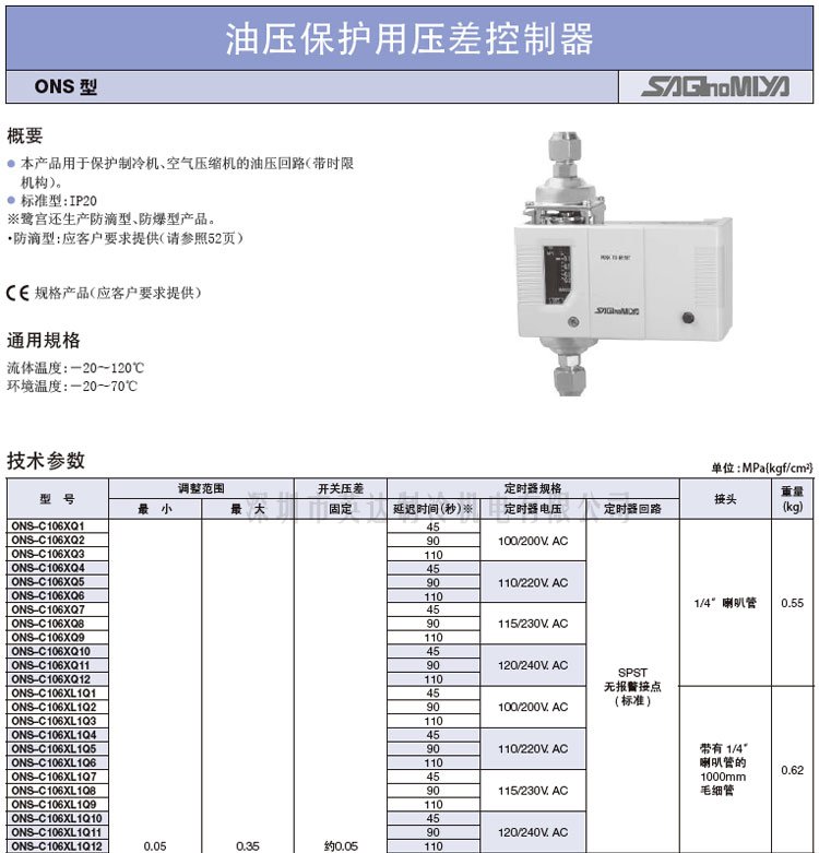 原装日本鹭宫油压保护压差控制器ONS-C106XQ5压差开关压力控制器