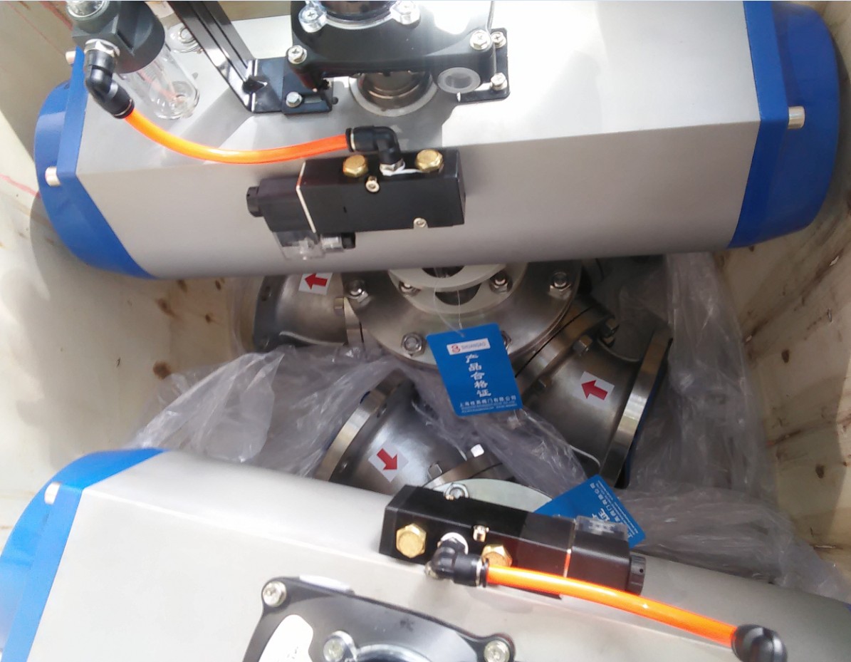 不锈钢气动Y型三通放料球阀135度换向阀45度卸料阀颗粒粉输送防爆