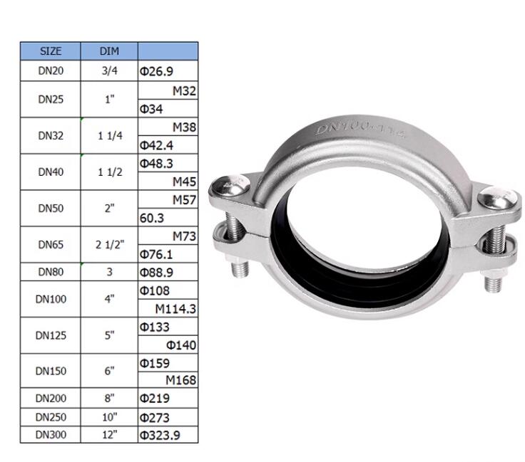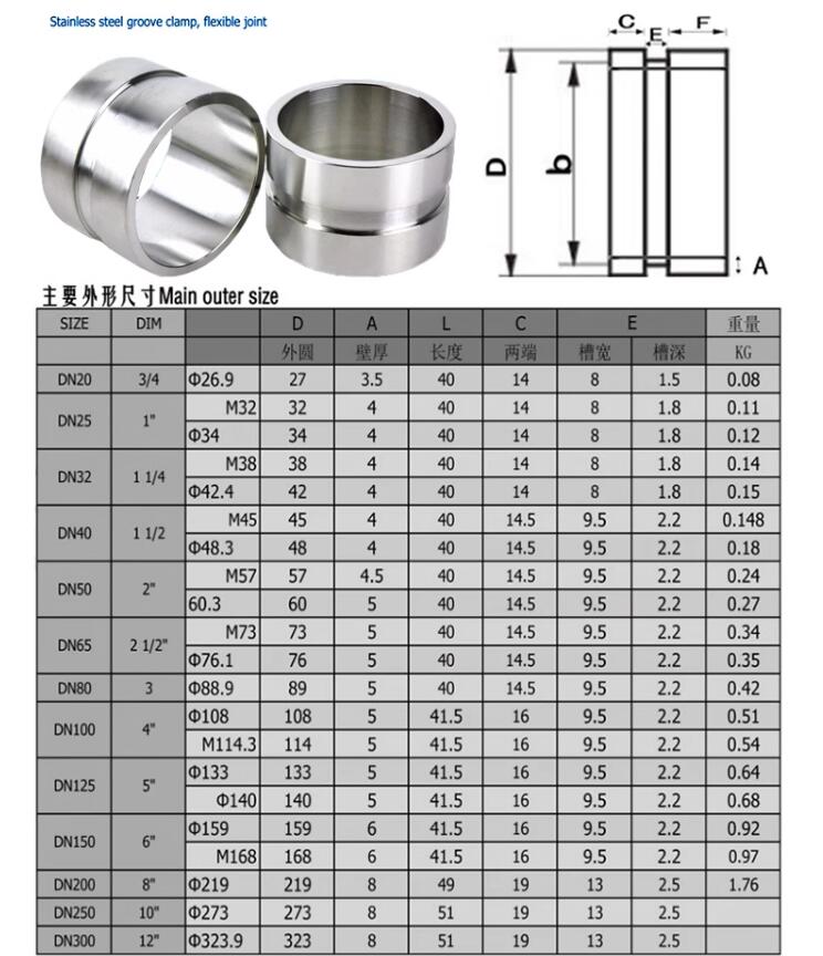 304/316不锈钢沟槽卡箍硅胶圈拷贝林管道连接件口径DN20-DN150 公称直径 | 20cm | ||