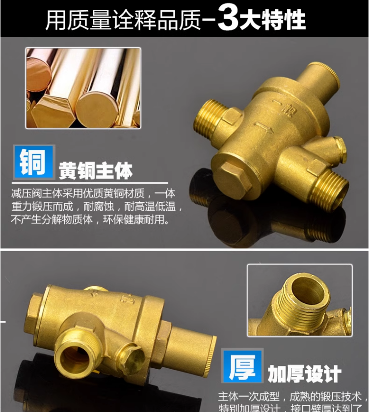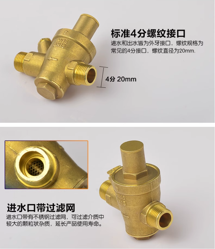 支管双外螺纹外丝全铜可调式减压阀稳压阀带压力表口径DN15-DN50