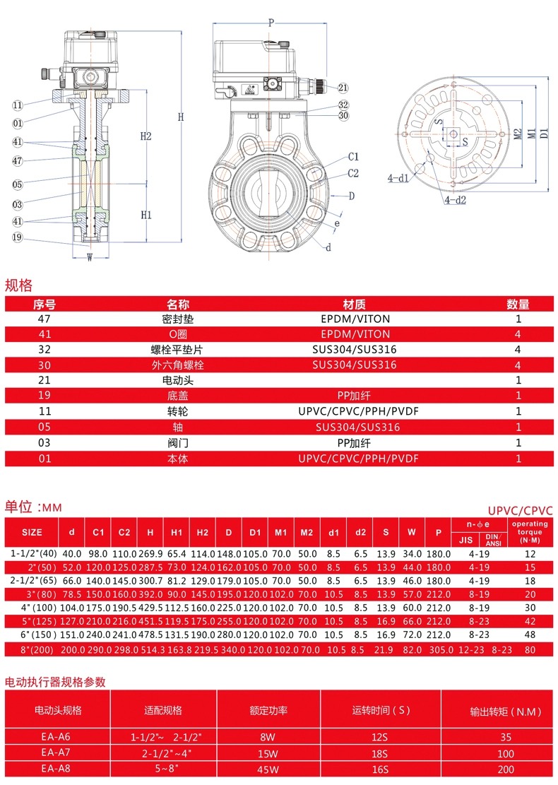 操作温度 | UPVC(5~55°C);PPH(5~95°C);CPVC(5~95°C);PVDF(-20~120°C) | ||
