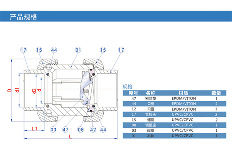 颜色 | 7)UPVC(深灰色),CPVC(浅灰色),PPH(米黄色),PVDF(象牙色) | ||