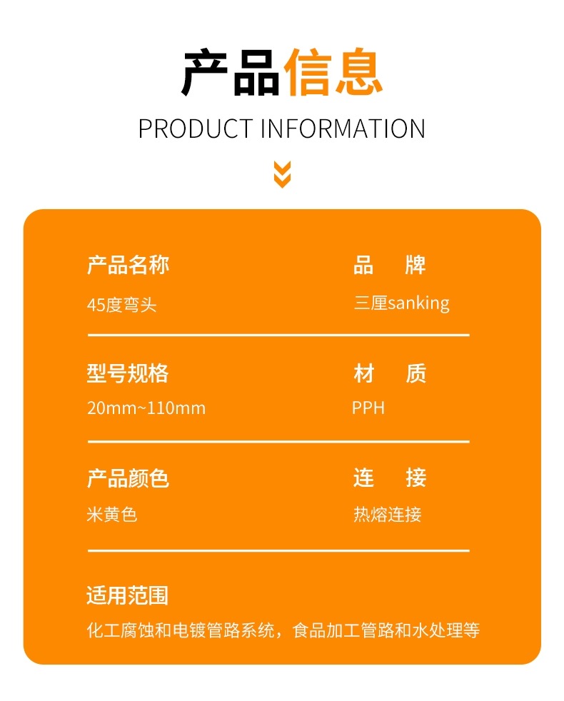 三厘SANKINGPPH45度弯头塑料PP配件管件工业级PPR耐酸碱