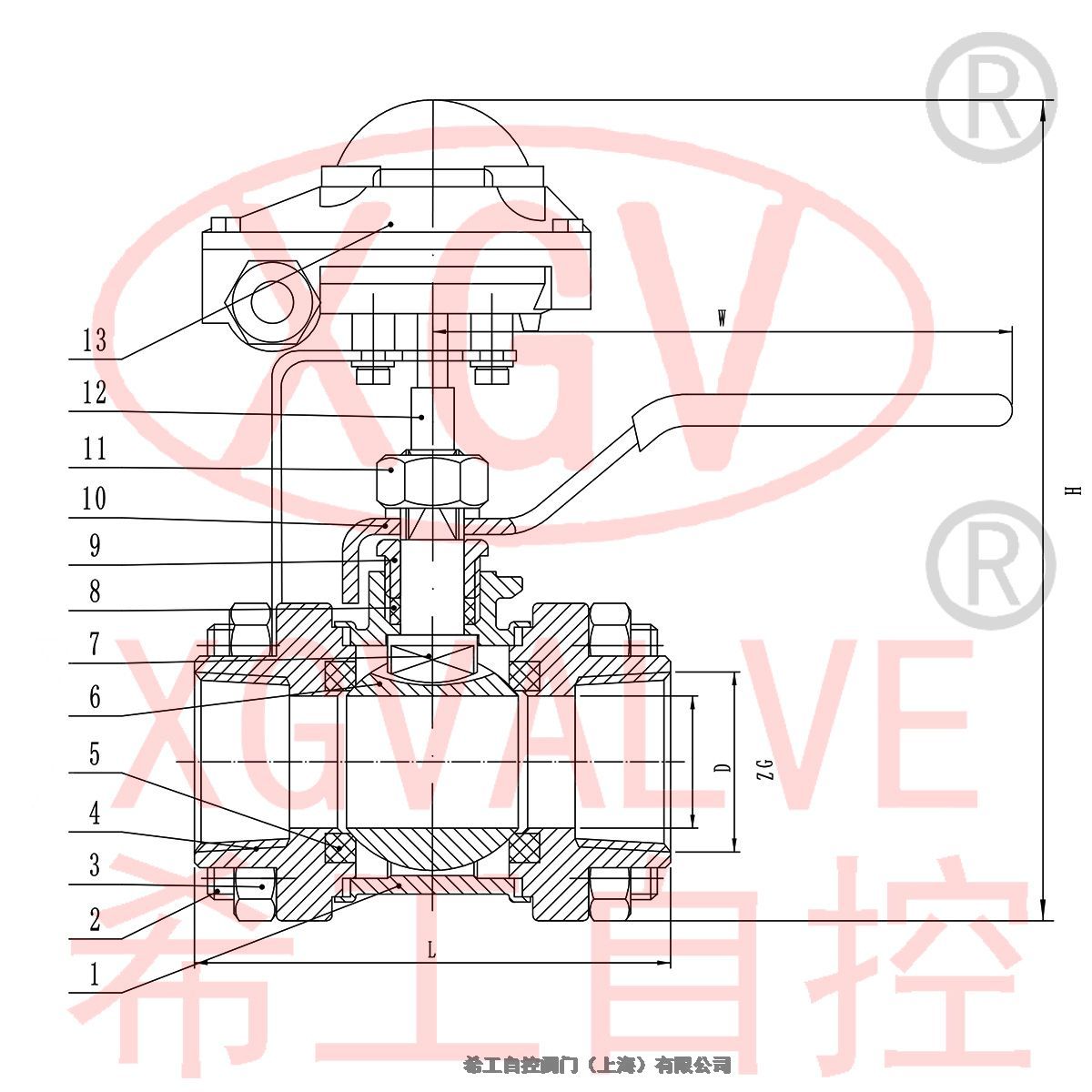 X3PQ11F不锈钢三片式手动带信号球阀连接尺寸