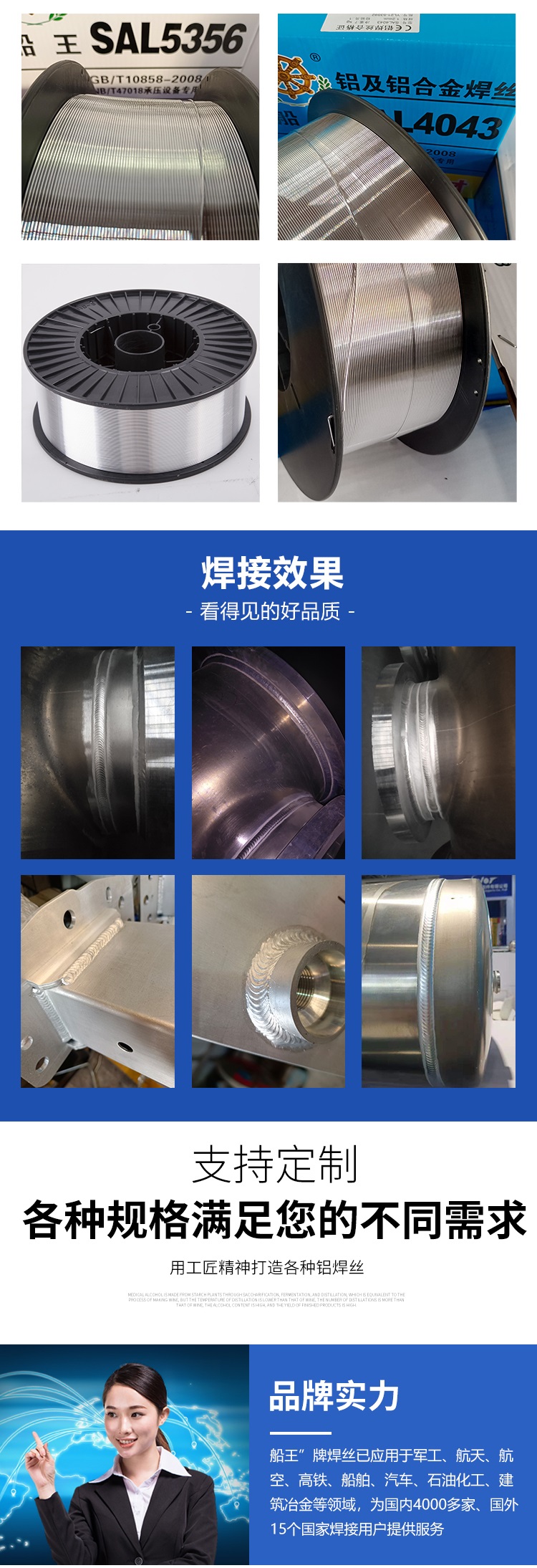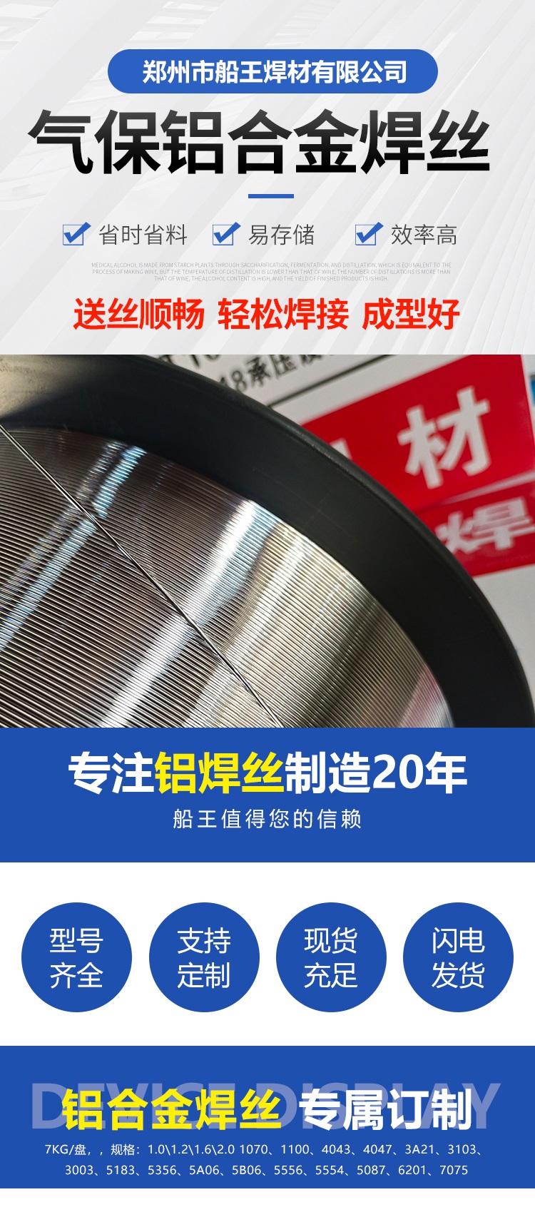 铝铝ER1070铝焊丝 纯铝ER1100铝合金5356/4043/5183/4047船王焊材 是否进口 | 否 | ||