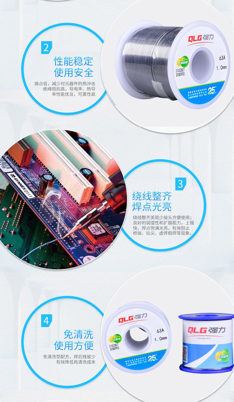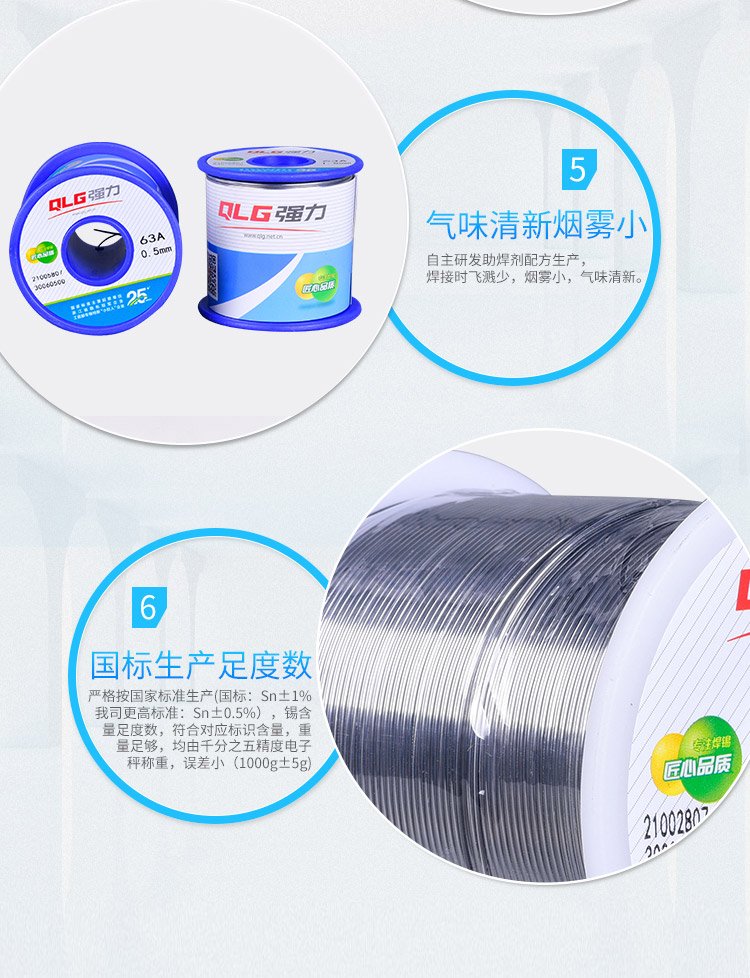 强力63A焊锡丝 免洗松香芯维修焊接0.5/0.6 0.8 1.0 1.2 1.5mm500g900g 品牌 | QLG强力 | ||
