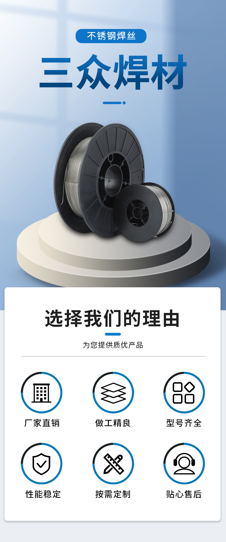 轻便高效牢固成型美观渣层薄烟尘小自保护不锈钢焊丝三众
