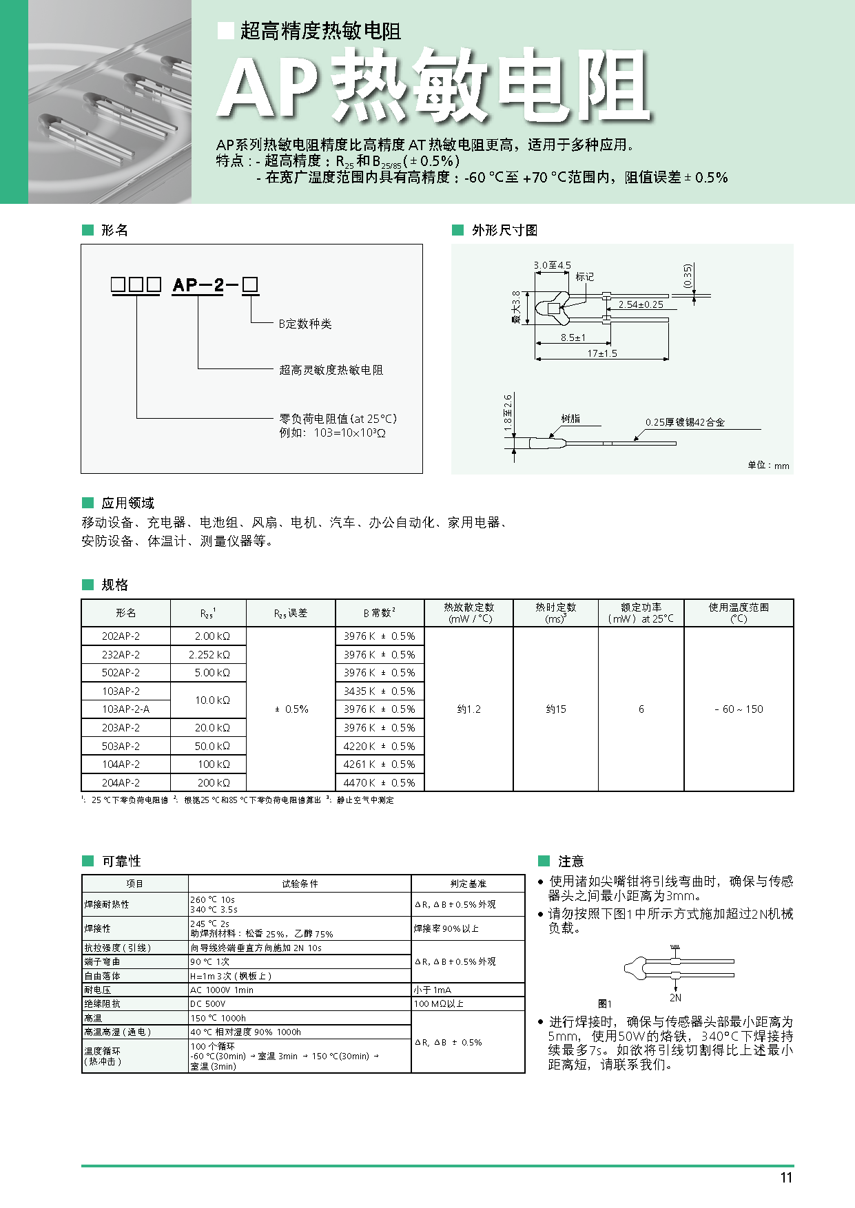 SEMITEC日本石冢AP系列插件型超高精度热敏电阻503AP-2