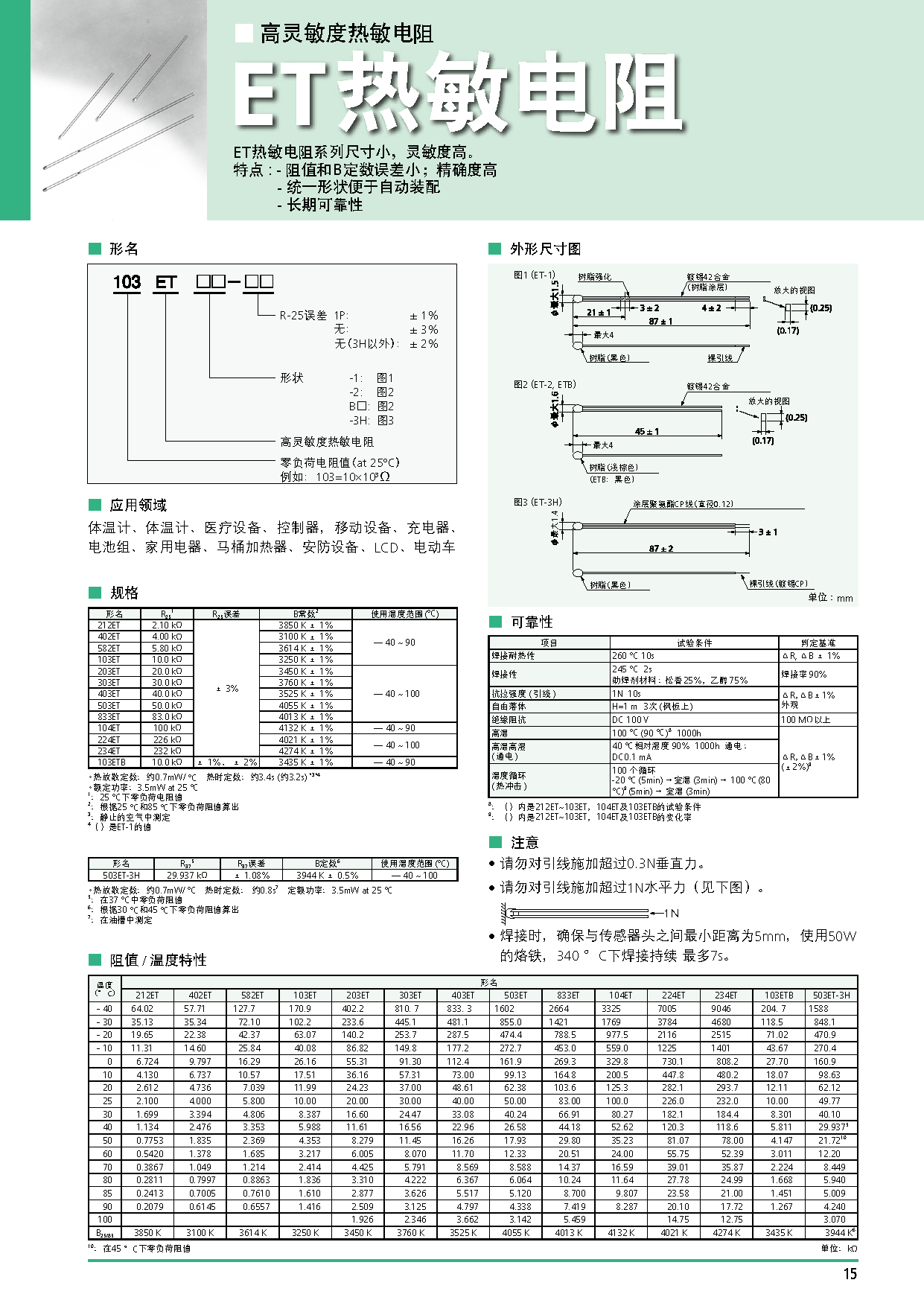 SEMITEC日本石冢ET系列插件型高灵敏度热敏电阻203ET
