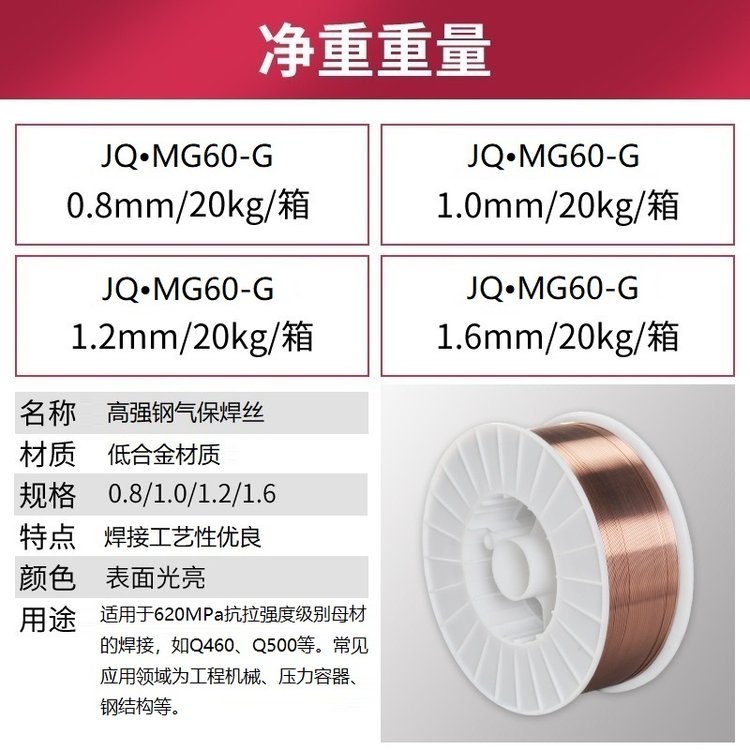 适用范围 | 适用于620MPa抗拉强度级别母材的焊接,如Q460、Q500等。常见应用领域为工程机械、压力容器、钢结构等。 | ||