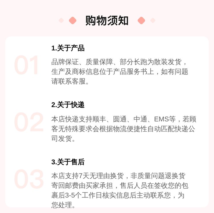 发货方式 | 支持顺丰、圆通、中通、EMS | ||