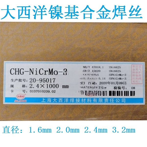 大西洋型号:CHG-NiCr-3镍铬焊丝 CHG-NiCrMo-3镍铬钼焊丝(625) CHG-NiCrMo-4镍铬钼焊丝(276) CHG-Ni-1纯镍焊丝 CHG-NiCu-7镍铜焊丝