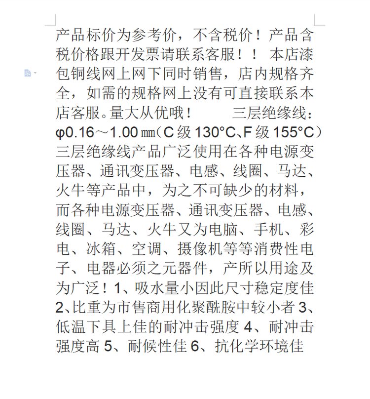 厂家销售0.15-1MM直焊三层绝缘线东莞电机漆包线批发