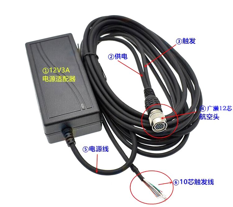12V3A工业相机电源适配器 兼容海康巴斯勒basler6芯高柔I/O电源线 品牌 | BH | ||