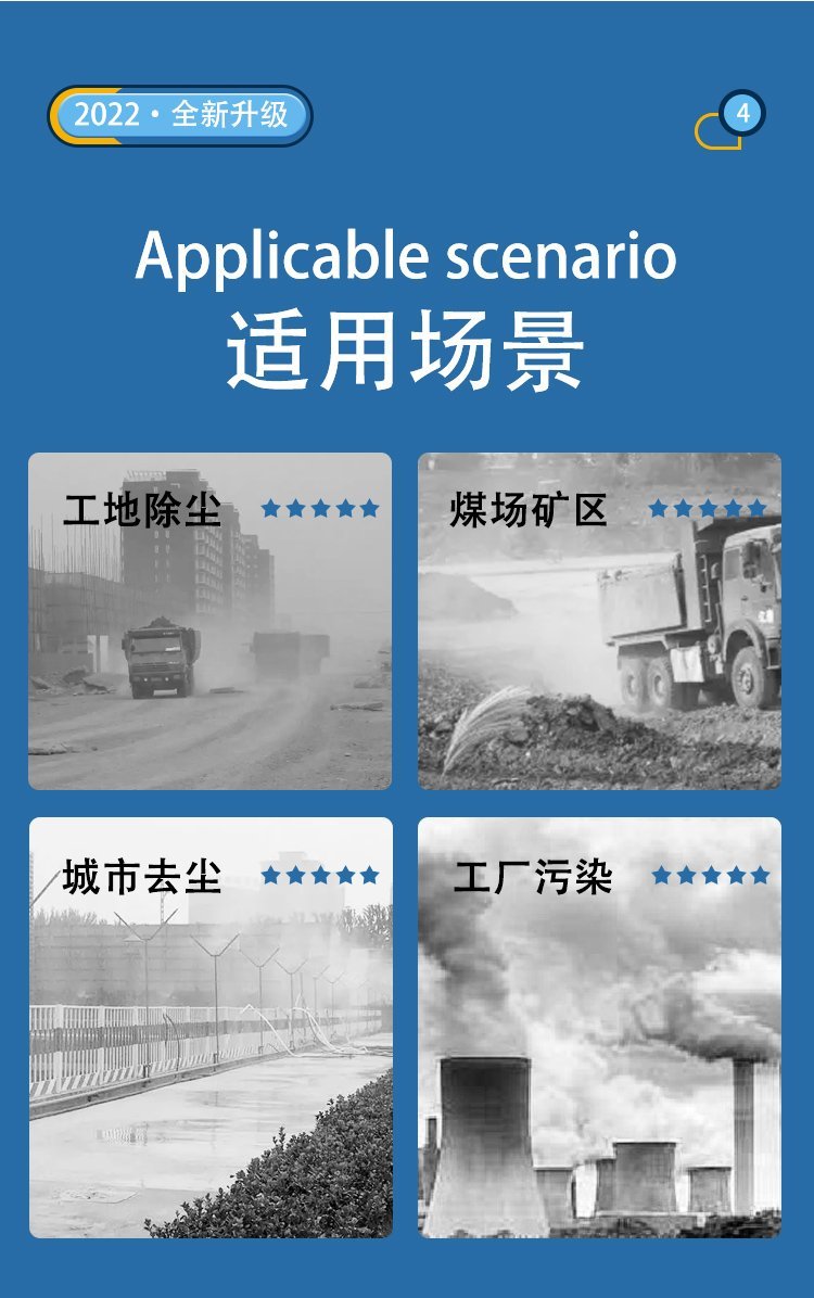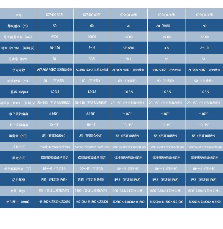 雾粒度(μm)(可调节)20~150(可定制超细款)(可定制干雾雾炮)(可定制双流体雾炮)