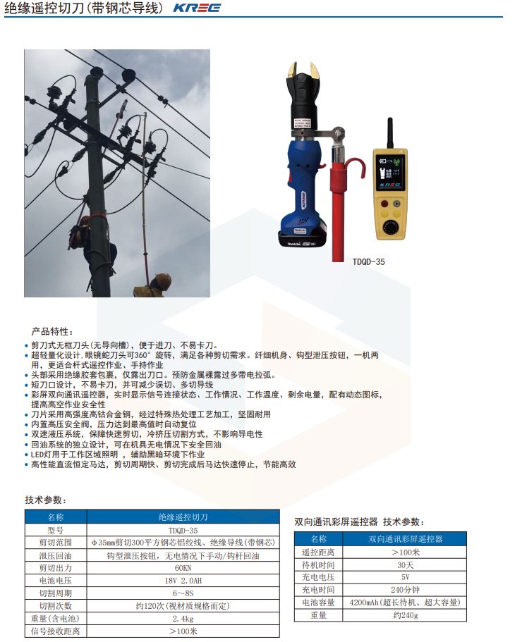 TDQD-35语音智能切刀开力KREE无线遥控适合高空操作