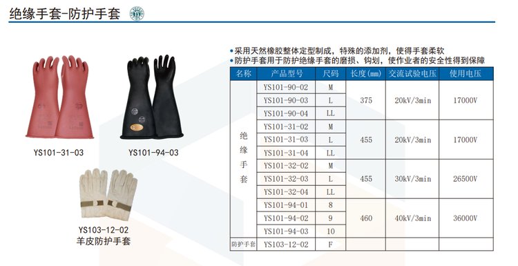 YS101-31-02高压绝缘手套电工用防电 电力橡胶10/20/35KV 日本进口 品牌 | 日本YS | ||