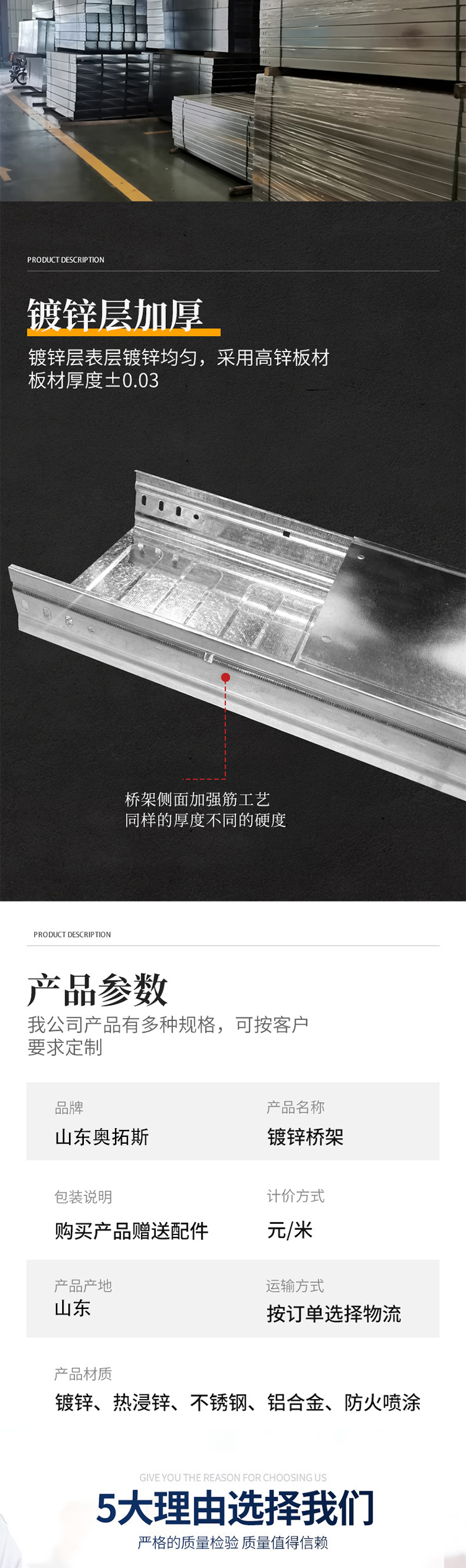 奥拓斯定制镀锌电缆桥架200*50mm防腐蚀200*100mm使用寿命长