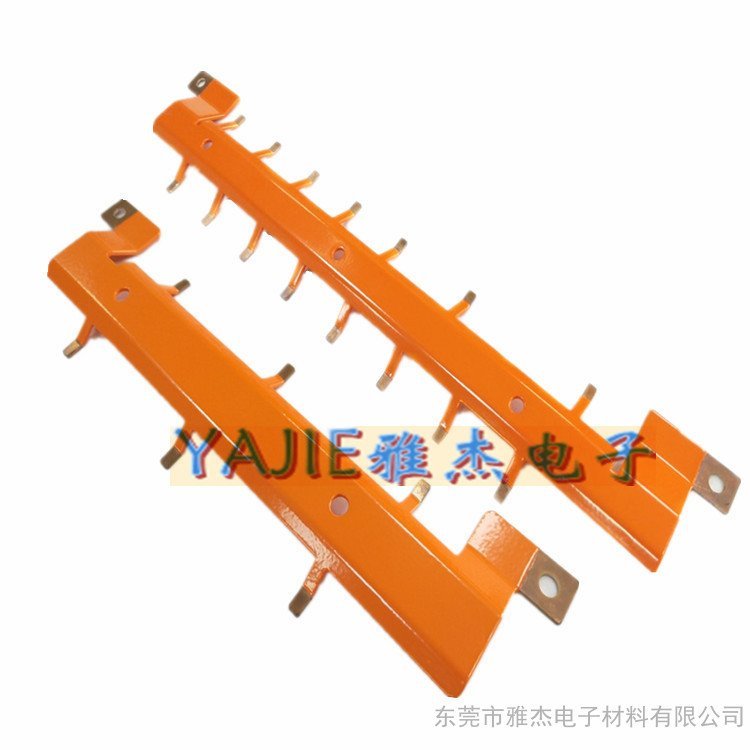 加工工艺上多数采用T2紫铜排,通过弯折、冲压、切割、表面抛光、表面电镀、绝缘处理等