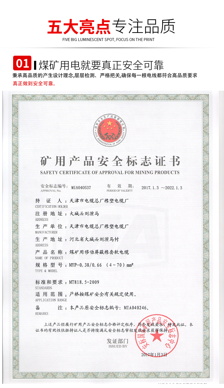 矿用移动橡套软电缆MYP采煤机移动线MCP380\/660v纯国标屏蔽线