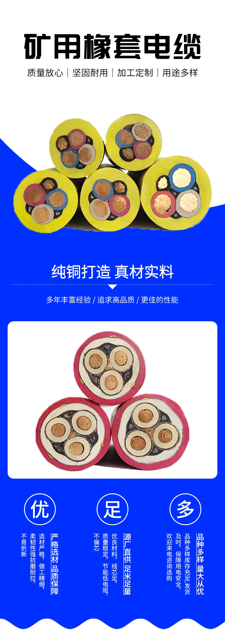 矿用移动轻型橡套软电缆MYQ 0.3/0.5KV 4*1.5 4*2.5 3*1.5 型号 | MYQ | ||