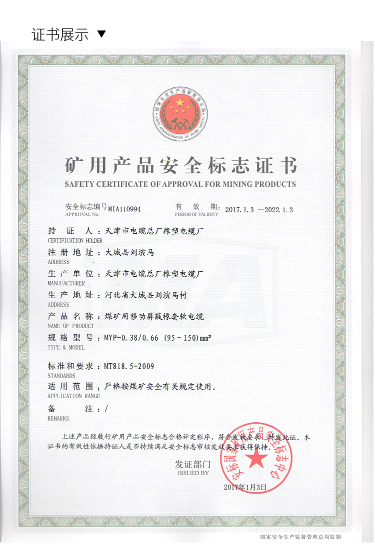 产品认证 | MT818.5-2009 | ||