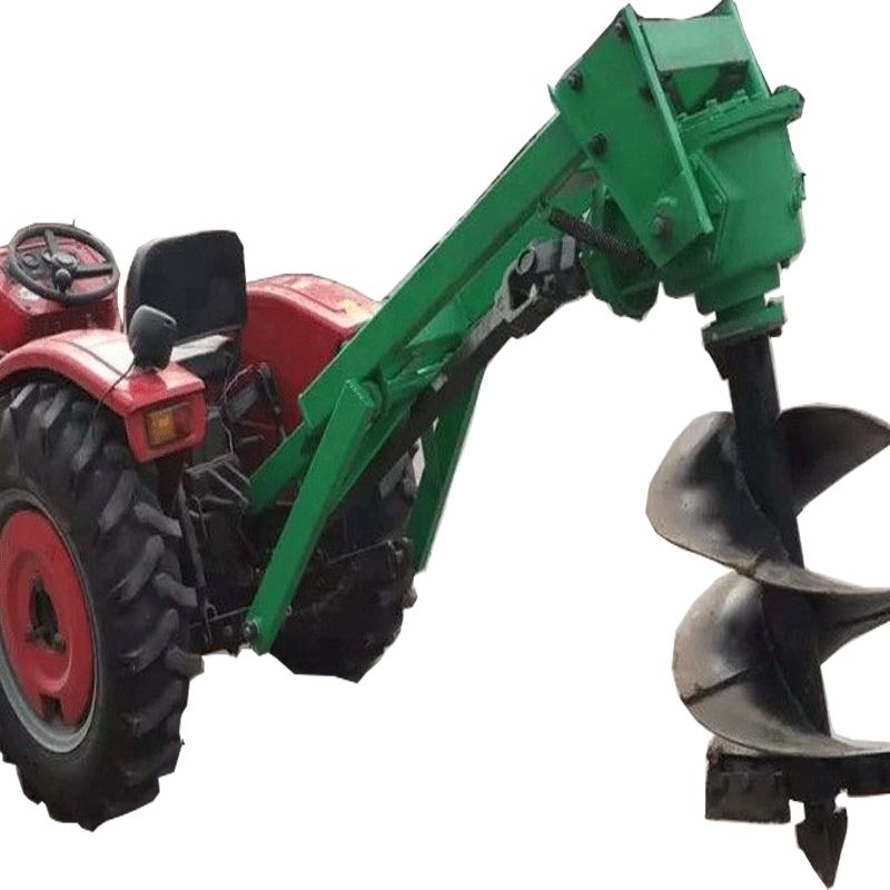 该机具有如下特点。 1、该机的全部机件安装在一个整体式机座上,机座靠六个螺栓固定在拖拉机齿轮箱(原牵引板位置)上,所以配套拖拉机不需任何改制。 2、挖坑工作靠机械动力下挖,负荷能力强、效率高。 3、由一人操作,作业中人不下机,通过操纵杆掌握钻挖头的起落,浮动以及钻挖深度。 4、钻挖平稳,成坑质量好,挖出的土壤堆在坑边附近。 5、该机结构紧凑,耐用性强,保养方便。