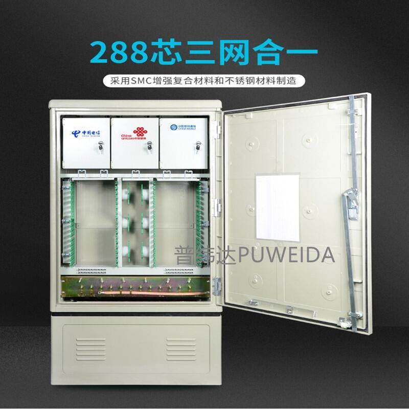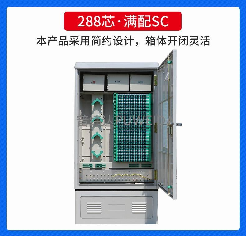 4 1350×750×320 288芯 10个MIN型盒式光分路器位。 288芯配线,120芯直熔、使用FJX12e模块。落地安装、SMC箱体。