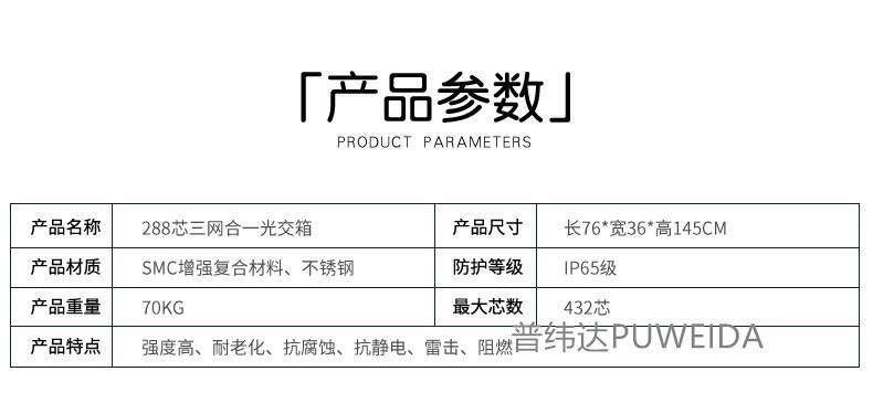 360芯三网融合光纤交接箱图文详细介绍产品介绍及应用随着电信营商3G、FTTx宽带提速工程的快速发展,传统传输线路带宽及光接入端口已经远远不能满足需要,基于EPON/GPON的FTTx网络结构,已成为运营商通信传输线路的方案。光缆交接箱作为传输线路中的重要组成部分,为适应传输网络的发展要求,功能从大芯数、熔配一体逐步过渡到多缆、小芯数、带分光配线等实际应用环境上来,其结构对熔接配线、线缆管理、分光配置、防护等提出新的要求。品悦通讯光缆交接箱产品,针对各地区域气候环境,推出不同材质、分光功能、配线容量的光缆交接箱产品可供选择,现已广泛应用于电信运营商3G网络、光进铜退、FTTx、城域网传输改造等项目中,应用方案如下:支持EPON/GPON分光功能品悦通讯多年来积极参与行业标准的制订,并参与YD/T988-2007<<通信光缆交接箱>>的起草及编制,该标准已成为行业内光缆交接箱设计、制造、测试、验收的重要参考依据。