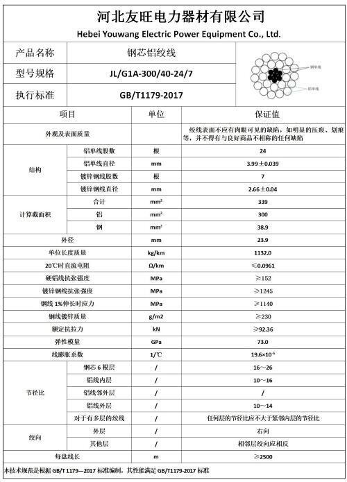 四、钢芯铝绞线300/40平方的哪里价格便宜产品基本参数及样本图片: