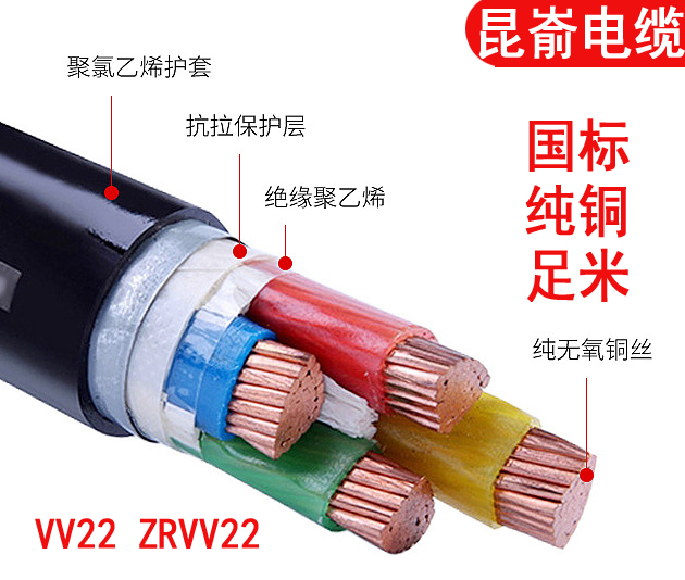 ZRVV? 为铜芯聚氯乙烯绝缘聚氯乙烯阻燃护套电缆适用于固定敷设,额定电压为0.6/1kV及以下 输配电路中,电缆长期工作温度不允许超过90℃,敷设温度不低于0℃。执行标准GB/T12706-2008
