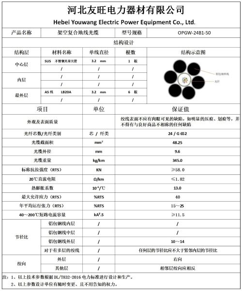 四、24芯架空光缆OPGW-24B1-50直销价格参数及样式图表: