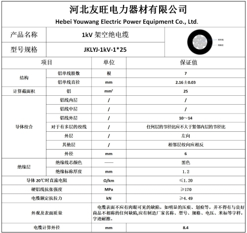 四、架空绝缘线JKLYJ25平方现货直销型号齐全产品参数及样本图片: