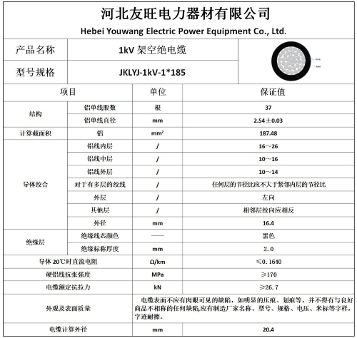 四、185平方架空绝缘导线多少钱一米JKLGYJ架空绝缘钢芯铝绞线产品参数及样本图片: