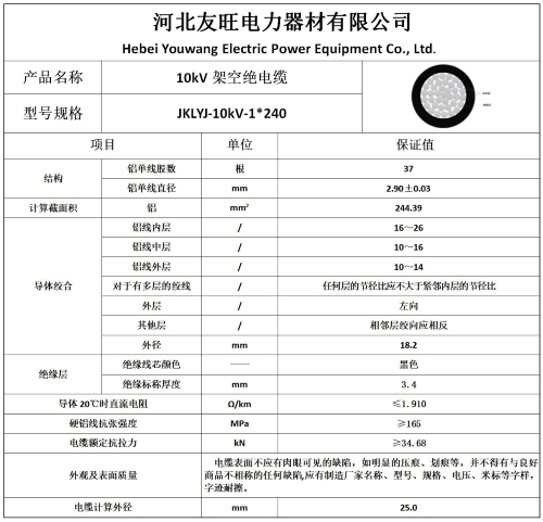 四、10KV架空绝缘线JKLYJ240平方架空钢芯铝绞线价格产品参数及样本图片: