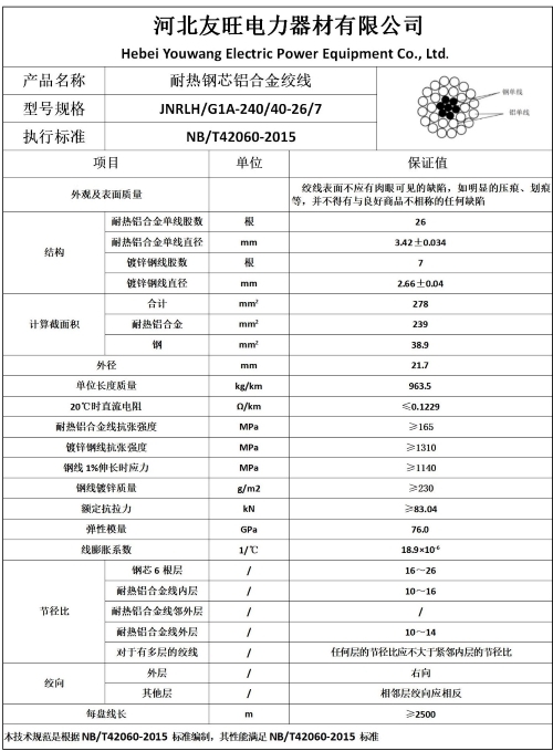 四、铝合金导线JLHA1/G1A240/40生产厂家高强度导线价格产品基本参数及样本图片:如下图表