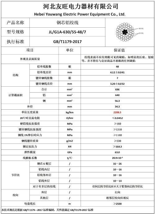二、 产品执行标准:GB/T1179-2017 《圆线同心绞架空导线》;
