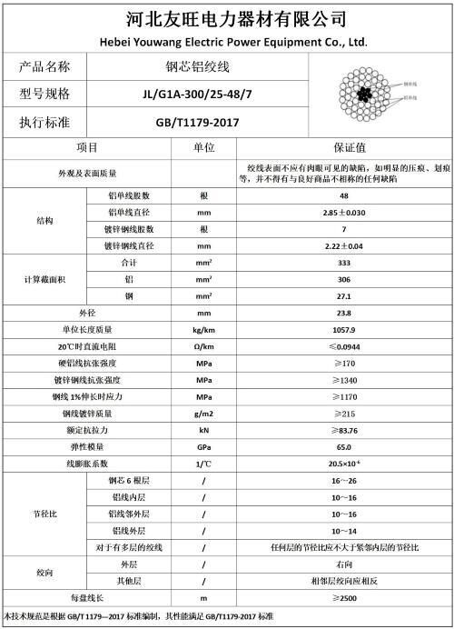 四量大优惠JL/G1A300/25钢芯铝绞线厂家直销产品基本参数及样本图片: