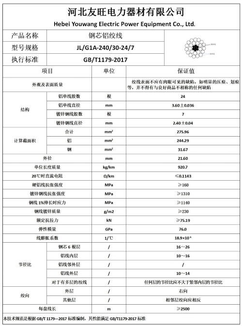 二、 产品执行标准:GB/T1179-2017 《圆线同心绞架空导线》;