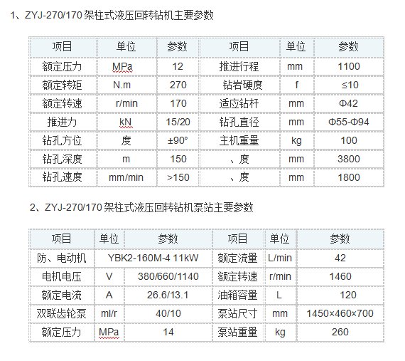 架柱式液压回转钻机—ZYJ-270/170回 转钻 机技术参数 品牌 | 河北国煤 | ||