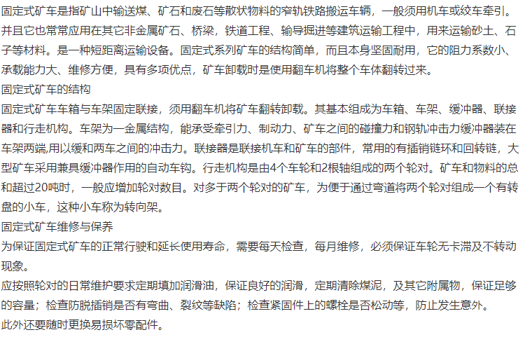 种类 | 固定式矿车 | ||