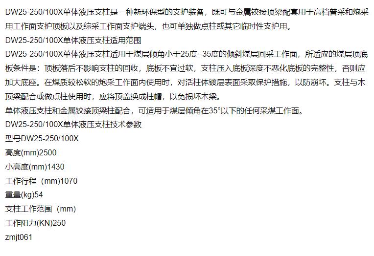 种类 | 单体液压支柱 | ||