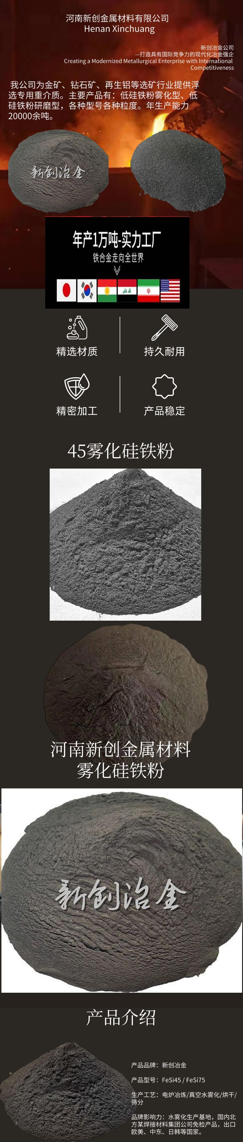 新创品牌雾化硅铁粉低硅铁粉粉末状高铁含量黑色灰色可选