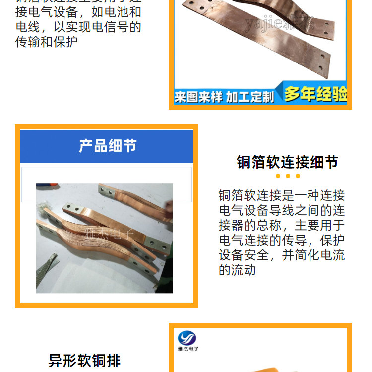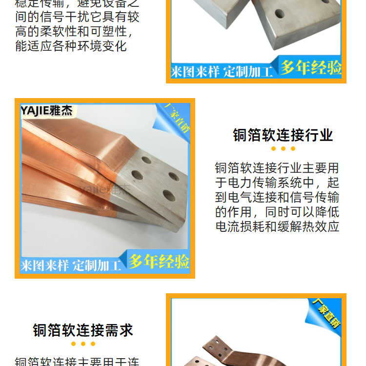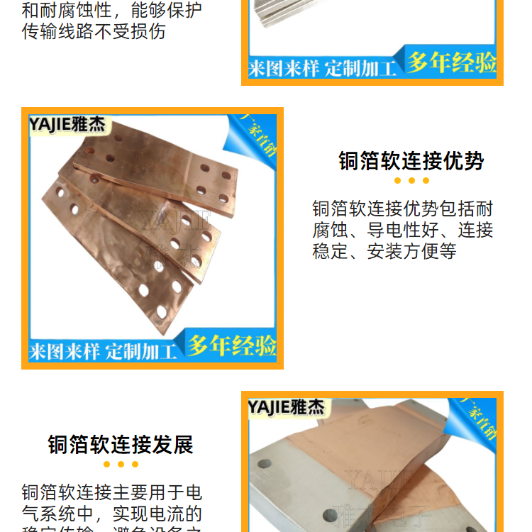 应用领域 | 发电机、变压器、开关、母线、工业电炉、整流设备、高低压电器、真空电器、电力机车、电解冶炼设备、配电柜、焊接设备及大电流设备中做柔性导电连接。 | ||