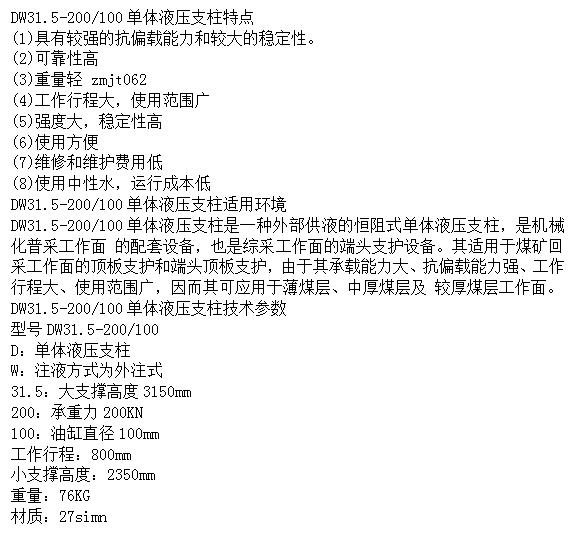 DW31.5-200/100单体液压支柱货源 煤矿支护设备 是否支持加工定制 | 否 | ||
