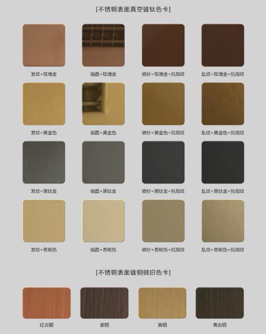 镀金系列:哑金、雾金、沙金、18K金、24K金、玫瑰金、香槟金、咖啡金、黑金、白金、厚金等。