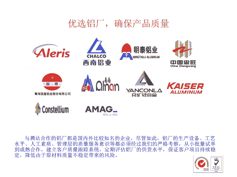 腾达特种金属公司主要从事6061铝板、带、箔的生产与销售,主营拉丝铝板、花纹铝板、进口6061铝板、5A06防锈铝板、合金铝板、中厚合金铝板、橘皮花纹铝板、指针花纹铝板、五条筋花纹铝板、以及铝皮、铝卷等。材质主要有1100、1050、1060、1070、2A12、2024、2017、3003、3004、3005、3A21、5052、5754、5083、6061、6063、6082、7075、7050、。状态分别为:1系:O态、H12、H14、H16、H18、H24、H26. 2系:T4、H112、H111,3系:O态、H14、H16、H18、H24 。 5系O态、 H112、H24、H32、H34、H36、H111, 6系:O态、H111、H112、T4、T5、T6、T651,7系:H111、H112、T6、T651等以上材质全部现货供应。特殊规格可以定制 可生产0.02-10mm 宽度800-2300mm薄板。厚板10-380mm 宽度200-2300 。现拥有现货库存600多吨。规格齐全,价格合理,所有现货可按客户所要求的尺寸进行剪切。经过十几年来的铝行业的从业经验,目前我公司销售网络遍及二十多个省市。通过全体员工的艰苦努力,以及兄弟单位的友好协作,在铝板行业领域中,我公司能够准确把握信息和机遇,以较快的速度,不断积累、不断完善,得到了不断的发展壮大。
