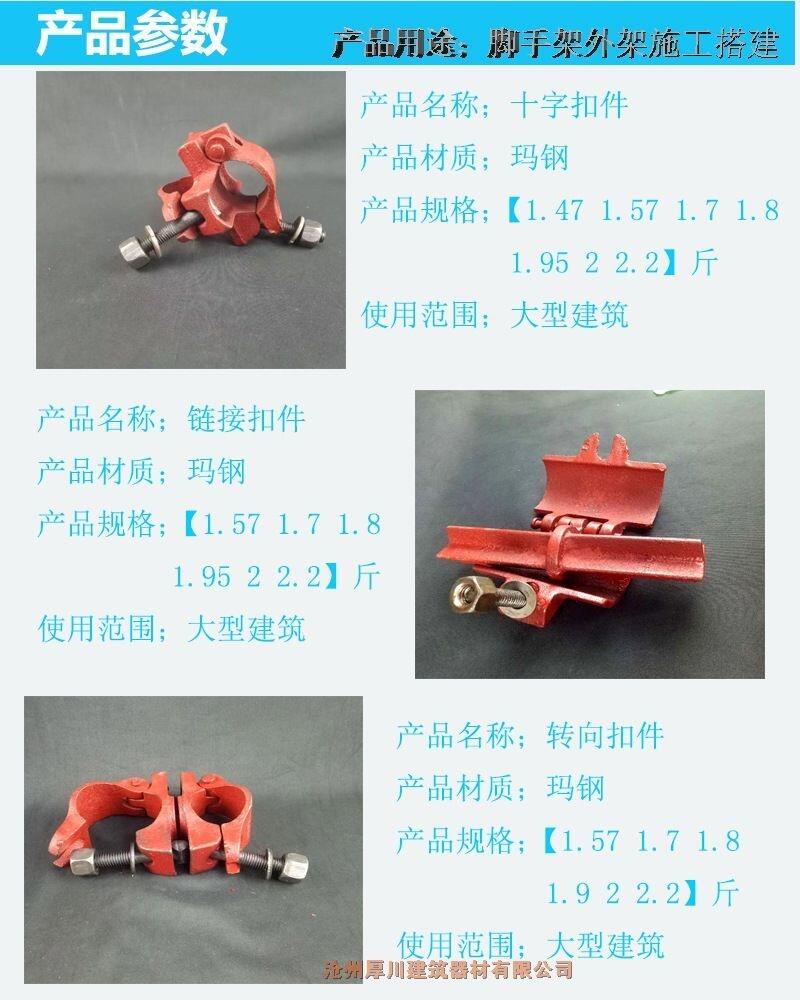 河北厚川牌建筑架扣扣件有1KG就是2斤的,应该对安全性有些要求了。新型强化扣件比国标的还要好。