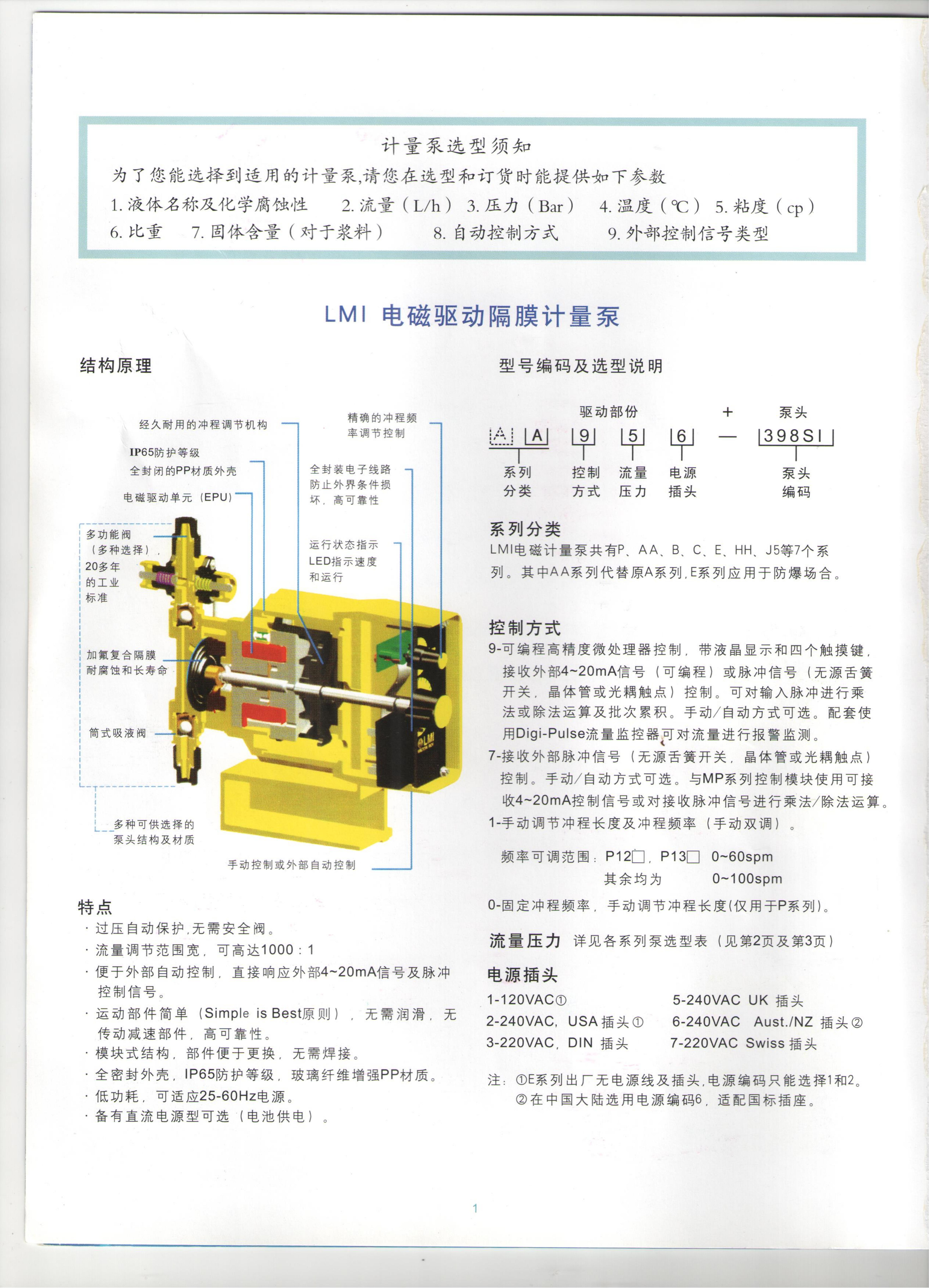 加氨泵C776-26/C776-26S米顿罗LMI电磁隔膜进口计量泵 类型 | 隔膜泵 | ||
