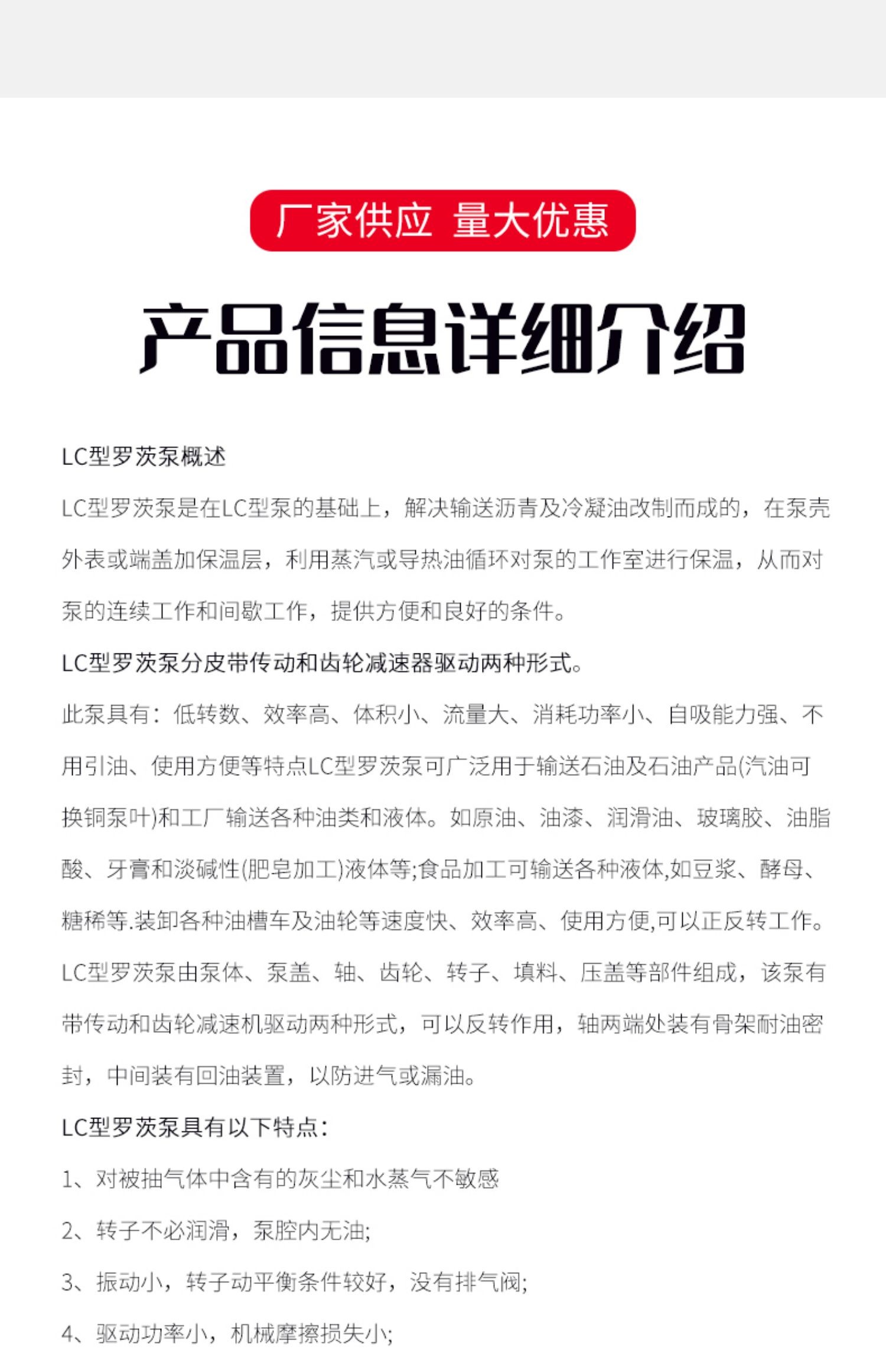 LC罗茨泵高粘度物料输送导热油保温泵铸铁不锈钢支持定做底座